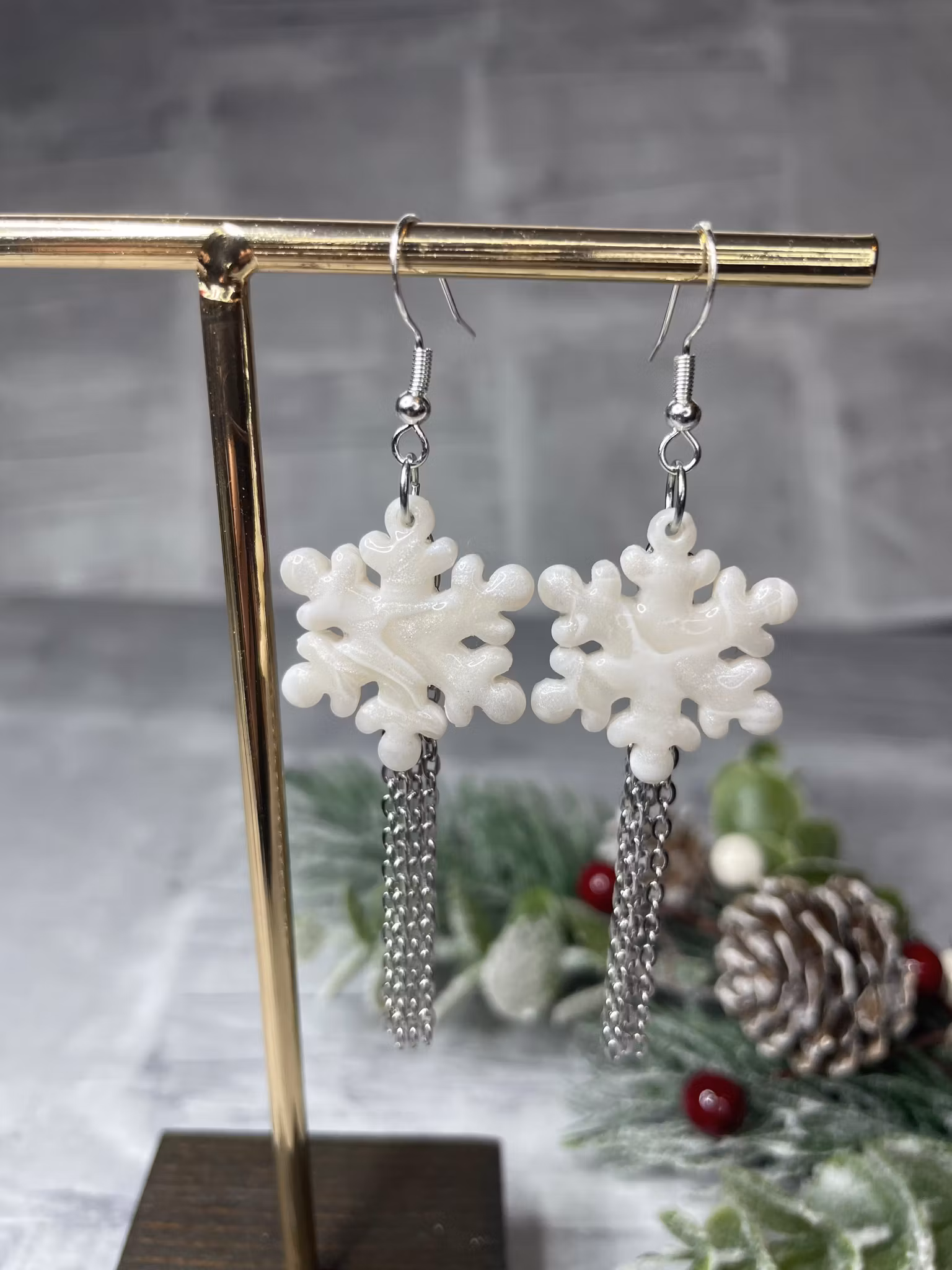 Måttet på snöflingan är 2,5 cm i diameter, total längd med krok är 8 cm.